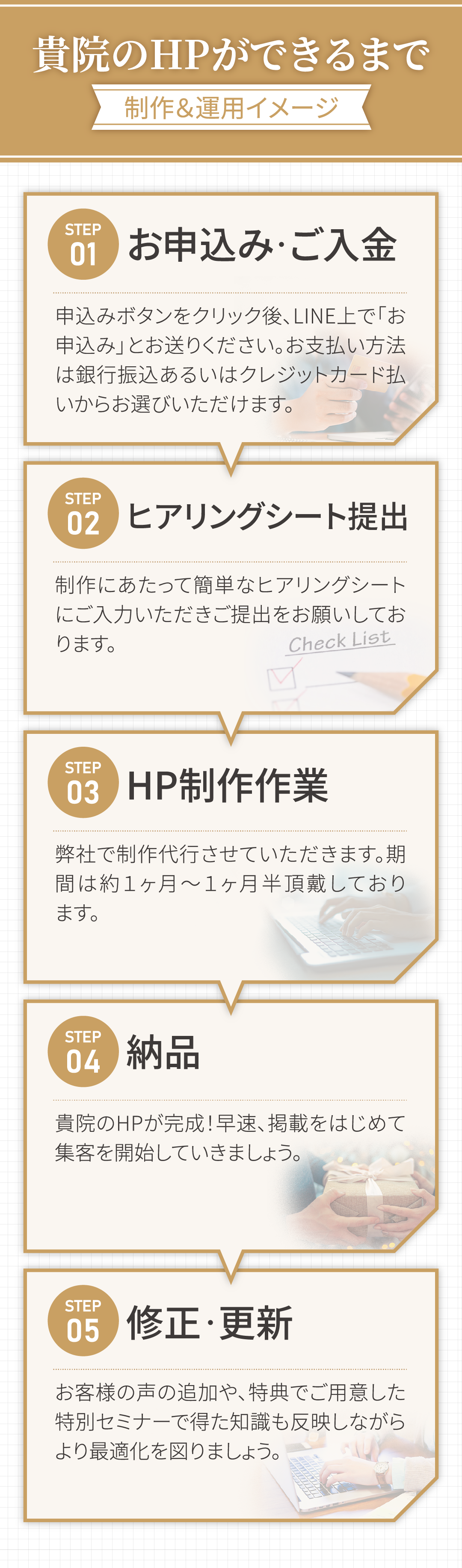 原稿執筆、デザイン、コーディングをワンストップで対応。初めてWebサイトをお持ちになる方には構築で必要となるサーバーやドメインのご提案も行います。