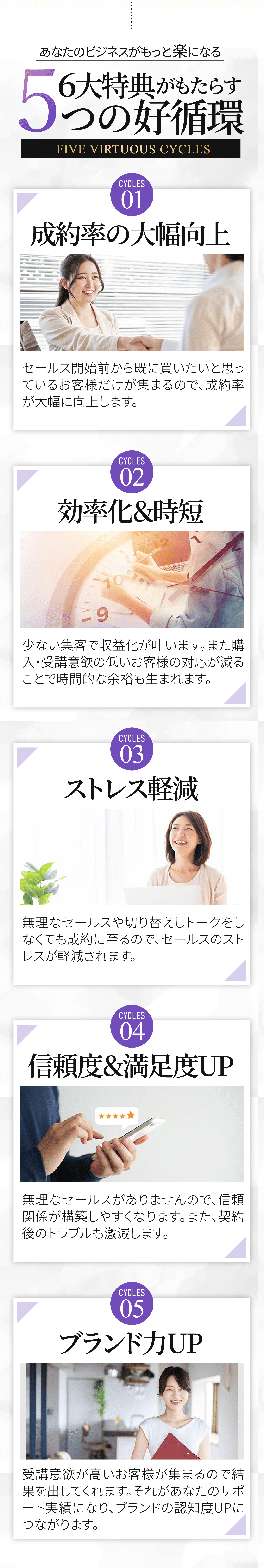 読みやすさとドラマティックなストーリーにより見込客を教育。購入意識の高い見込客をフロントエンド(個別相談やセミナーなど)へ誘導いたします。