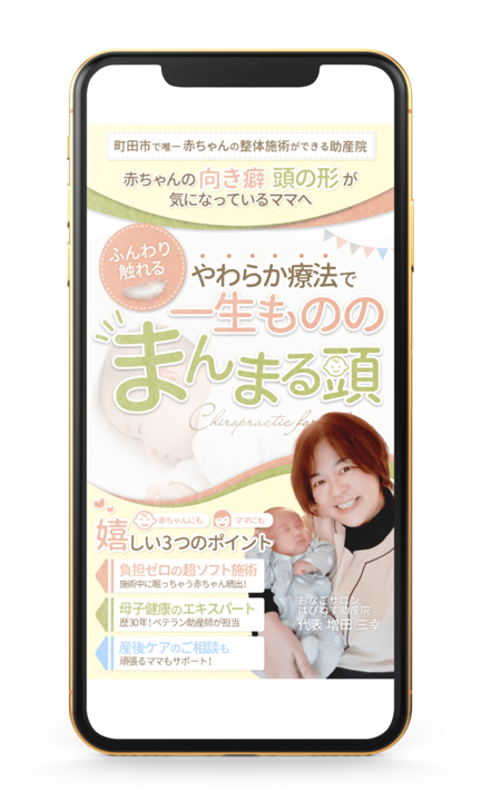 ご紹介をいただき乳幼児向け整体院(向き癖や斜頭の改善)のLPヘッダー画像を担当させていただきました。