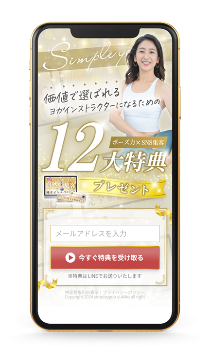 メルマガ・LINE獲得用LP(ヨガ講師専門集客コンサルタント)