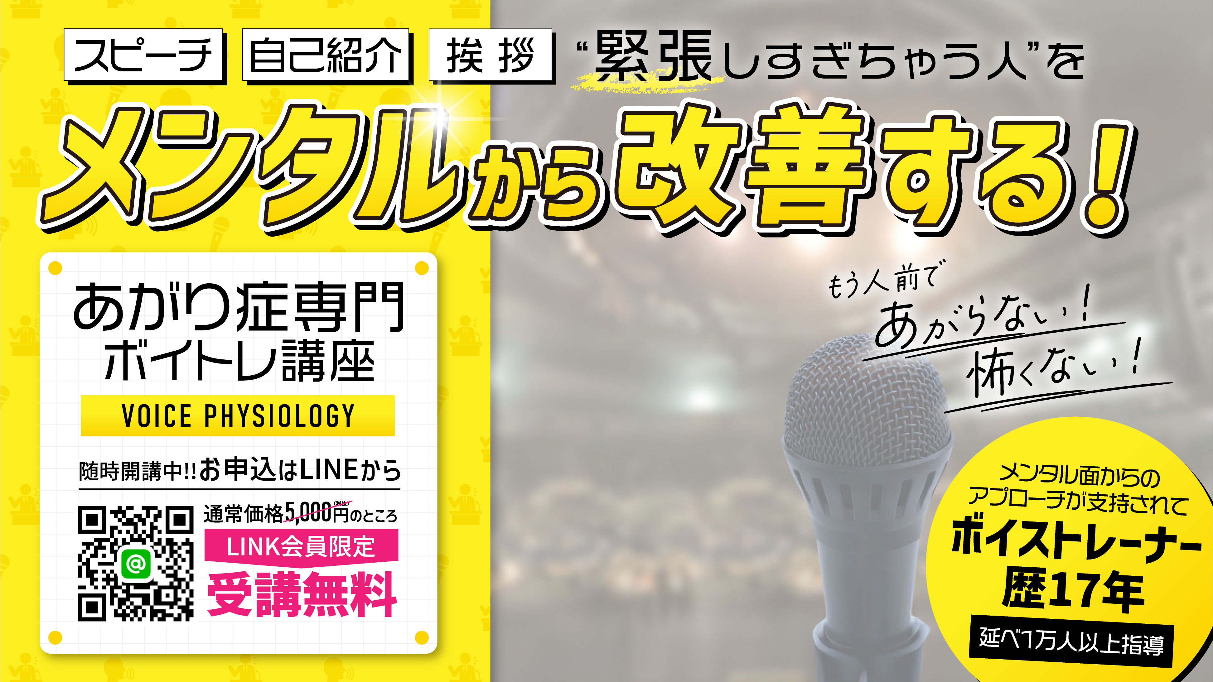 あがり症を専門としたボイストレーニング講座を募集するZOOM背景。はじめクライアント様の雰囲気から落ち着いた色を想定していましたが、作る中でイエローが似合うことを発見。イエローの面積を増やして快活なイメージに(後日談、昔黄色が似合うよねと周りから言われたことがあったとのこと)