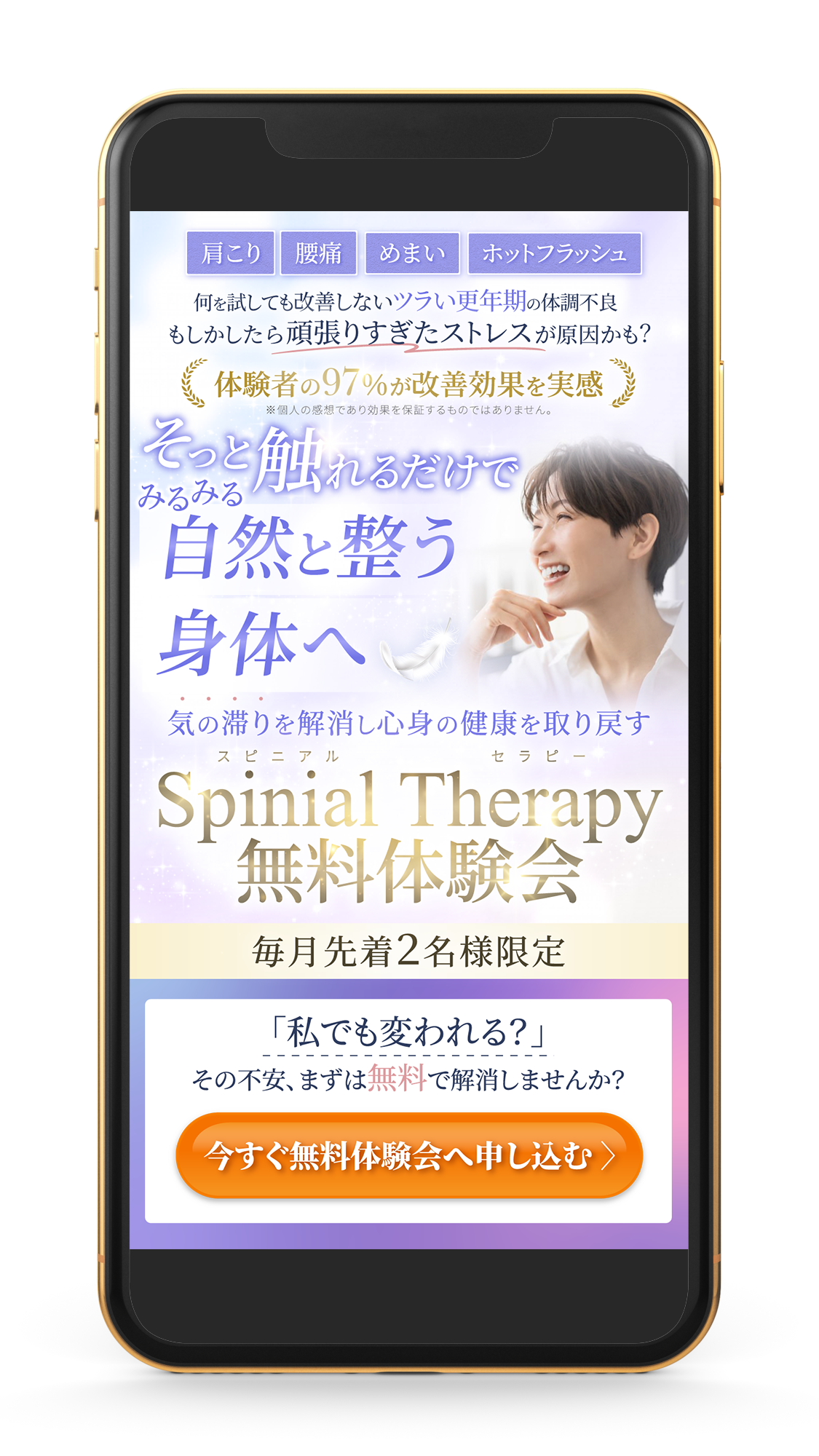 スピリチュアルと整体を掛け合わせたコンテンツの無料体験会のLPを作成いたしました。