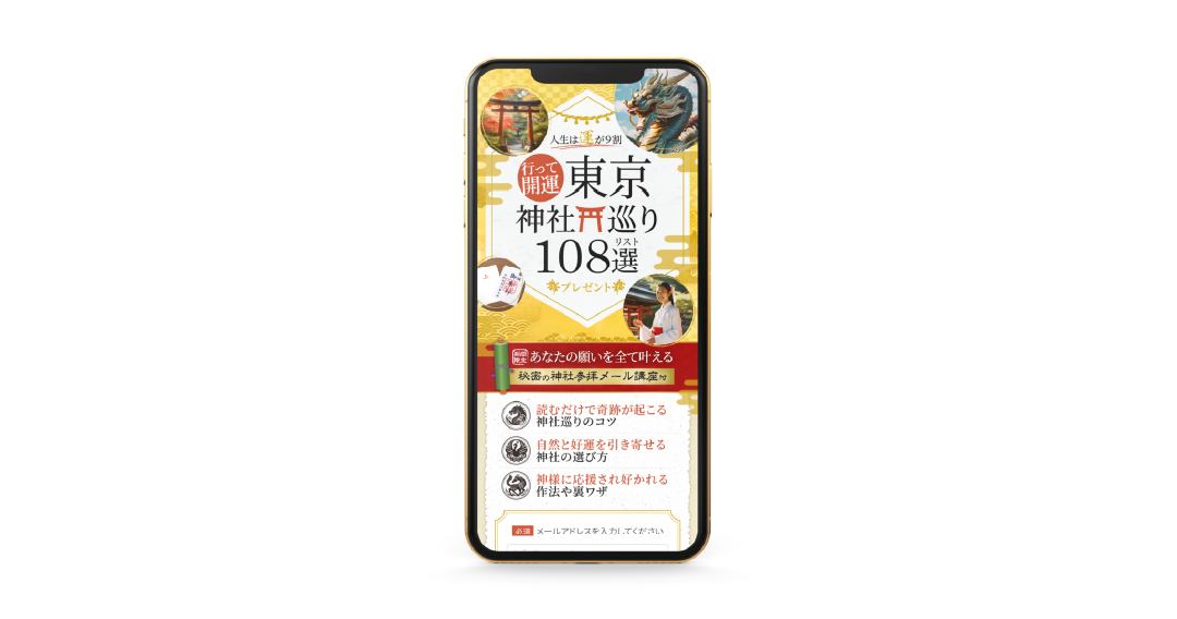 メルマガ・LINE獲得用LP(スピ起業プロデューサー) 案件の概要 無料のオプト特典をオファーするLPです。 ポイント 実在する神社は著作権の影響で素材として使用できず… ほぼAI生成画像を使用しています。和風×AIがど […]