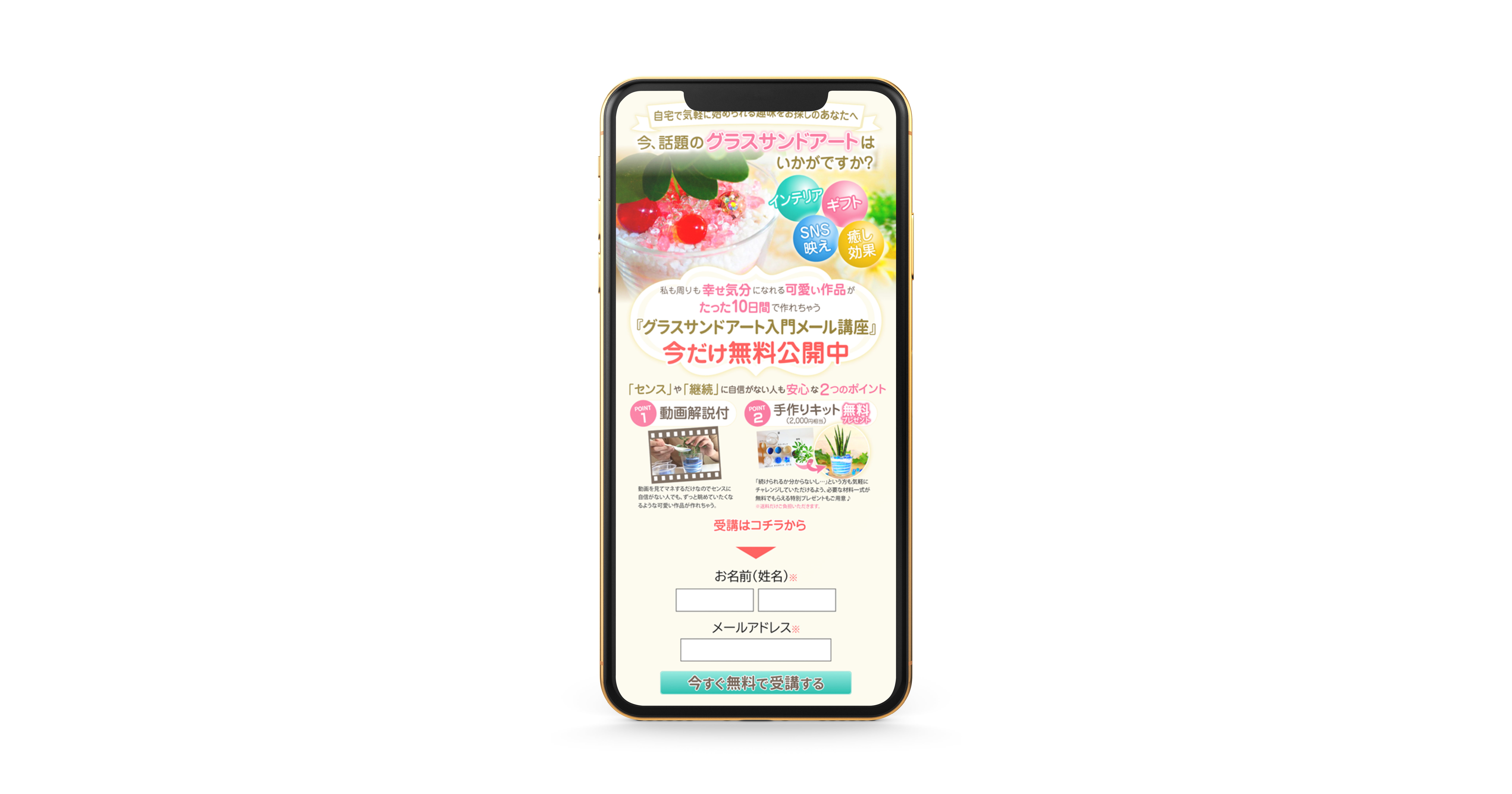 メルマガ・LINE獲得用LP(教室ビジネス) 案件の概要 原稿の執筆を担当させていただきました。 ポイント 新しい業種のLPで雰囲気や表現など非常に勉強になる良い機会をいただきました。