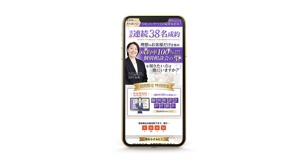 LPヘッダー画像(ウェビナー募集) 案件の概要 無料のウェビナーをオファーするLPです。 ポイント 全部は読んでくれないので、「連続38名成約」や「成約率100%」「型」など、それだけを読めば概要が伝わる重要なキーワード […]